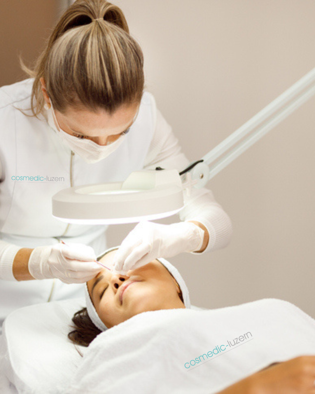 Nach einer Betäubung mit anästhetischer Salbe wird die Haut im Institut behandelt.
